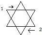 5. Go to the East of the Altar and face East. Trace a Red Mars Invoking Hexagram, with the Index Finger of your Right hand, while vibrating "ARARITA."